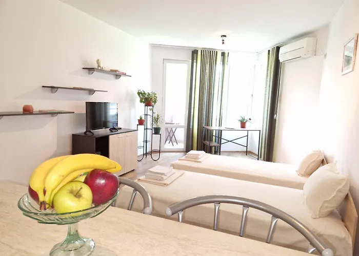 بالإضافة إلى مرافق الخدمة الذاتية مثل المطبخ الصغير، توفّر هذه الشقة للضيوف المنطقة لتناول الطعام حيث يمكنهم تذوق وجباتهم. وتقع هذه الشقة بمساحة 44 مترًا مربعًا على بعد 15 كم من مطار بورغاس.
